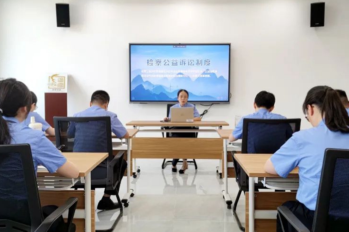 为进一步丰富“四名”争创活动举措,通过开展精品课堂强化“名人”在办案能力、理论素养、授课技巧等方面的示范引领作用,近日,金坛检察院第五检察部主任邹慧娟进行示范授课,部分业务干警参加。课前,邹慧娟在7月份省检察官学院授课的基础上优化教学方案、精心打磨课稿、修改完善课件、开展多次试讲。课上,邹慧娟以“‘食药环资’公益诉讼案件办理思考——以金坛检察公益起诉案件为样本”为题,从金坛检察近五年食药环资案件概况、环境资源公益诉讼案件探索、食品药品公益诉讼案件探索、食药环资案件办理总结等四个方面讲述。课程案例翔实、元素丰富、深入浅出,理论性和实践性结合较好,指导性、互动性、观赏性较强,受到参加干警的一致好评。